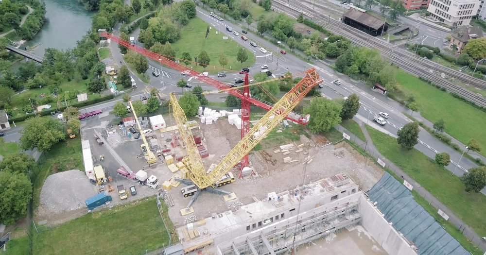 Mit im Bild: der grösste Pneu-Kran der Schweiz (max. Traglast 600t)! Herzlichen Dank an Marin Wolf, der uns dieses Video zur Verfügung gestellt hat (copyright).