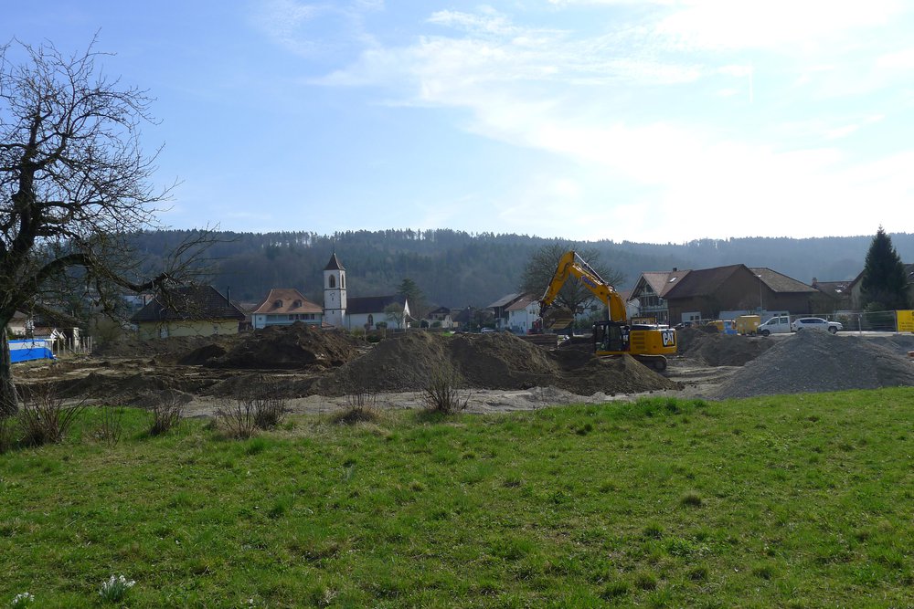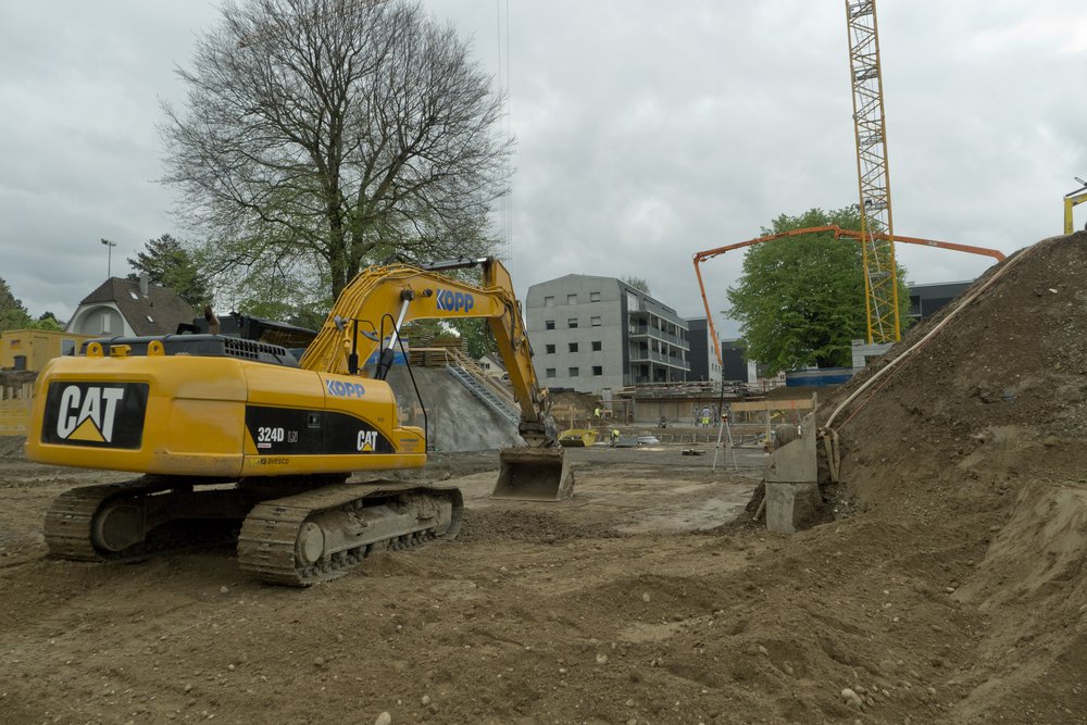 Mit grossen Schritten und schweren Maschinen wird auf der Kochermatte in Aegerten die Baustelle vorangetrieben.