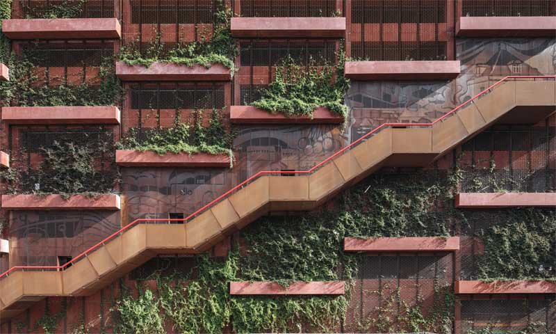 Im Rahmen des Programmes Kunst am Bau wurde die Arbeit "Beautiful Entrance #7" des Künstlerduos LANG/BAUMANN montiert. Die beeindruckende Fassade besteht aus 50 Fertigelementen aus Beton.