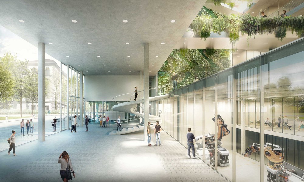 Die erste Bauetappe sieht zwei Laborneubauten im südöstlichen Teil des Areals sowie einen Park, welcher zum räumliches Bindeglied des Areals wird, vor.